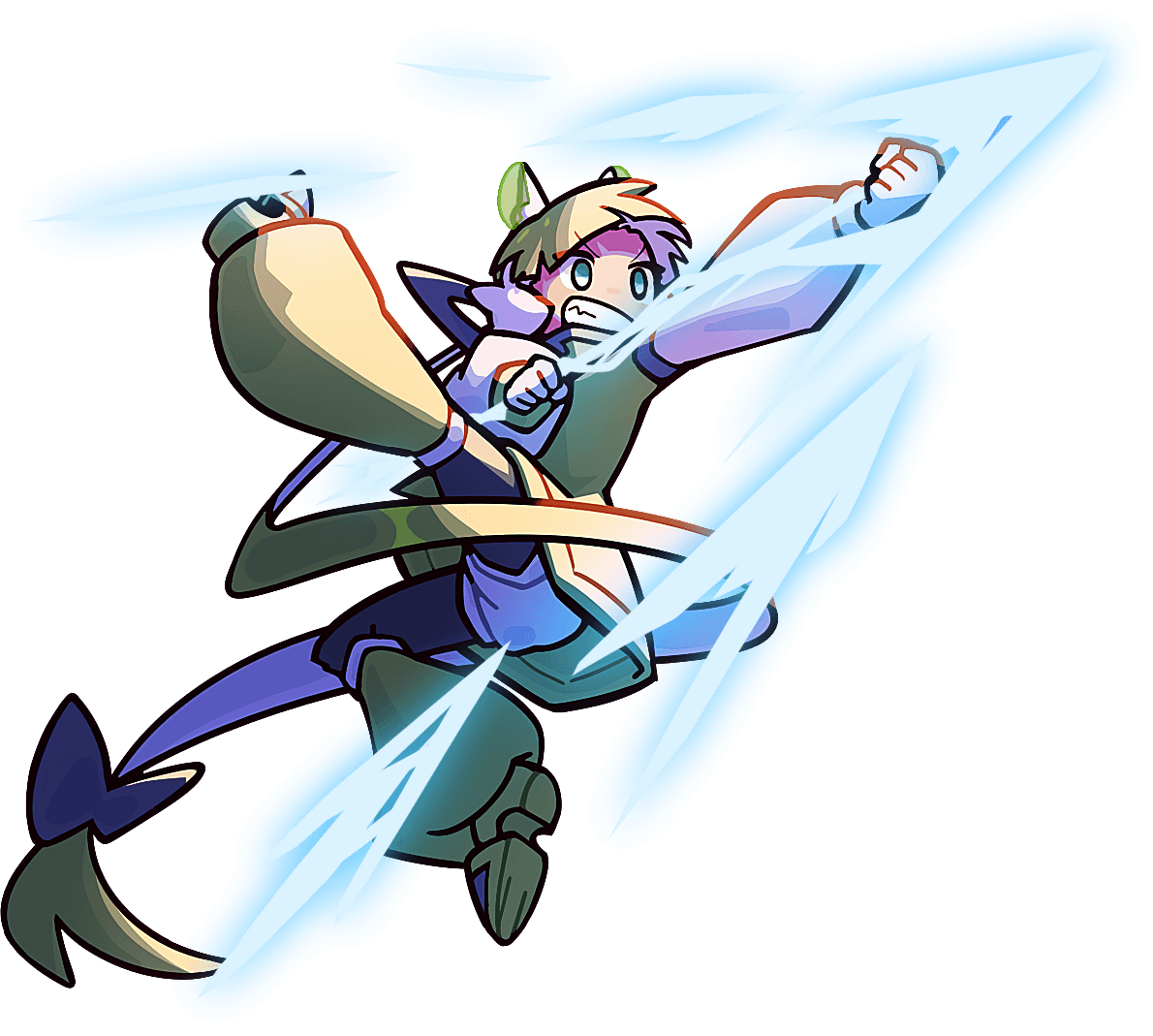 A mix of Sonic, Mega Man Zero, and Smash.